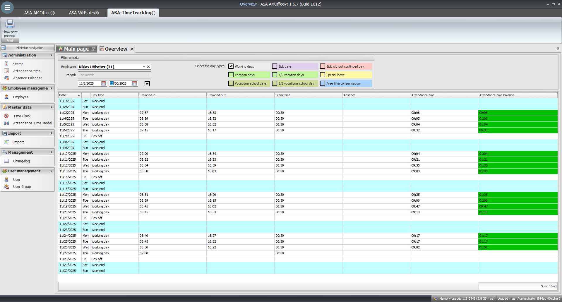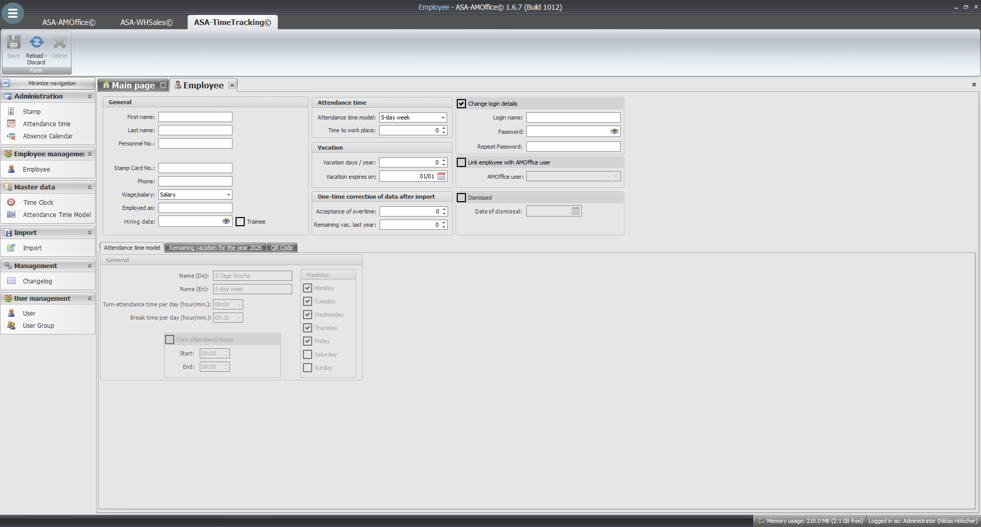 ASA-TTracking© is the new time tracking software for your company.Integrated into ASA-AMOffice©, ASA-TTracking© enables efficient recording and evaluation of your employees' attendance times as well as clear vacation planning—all in a single, user-friendly software solution. Record attendance times directly and in real time, and create clear reports for your billing or evaluations. With ASA-TTracking©, you can generate detailed overviews that enable precise planning and control. Manage your employees efficiently: Implement flexible attendance models and keep track of attendance, overtime, and breaks at all times. ASA-TTracking©'s vacation planning feature helps you coordinate vacations quickly and clearly. The ASA-TTracking© permission system allows you to manage employees individually and adjust their access rights according to their position in the company. Contact us today for a free demonstration of the powerful ASA-TTracking© time tracking software!